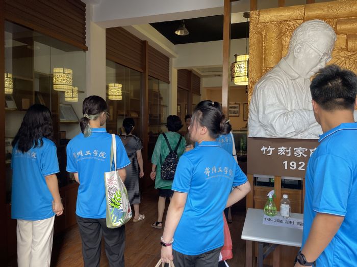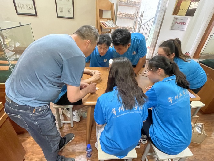 第三站,团队成员来到了常州白氏留青竹刻博物馆,在白氏传承人白雪飞老师的悉心讲解与指导下,实践团队参观了白氏留青竹刻的馆藏作品,尝试了留青竹刻的切线、铲底、刮底……,感受给竹片做“减法”的不易,深刻体会到白雪飞父女为传承留青竹刻的信念和坚持。
